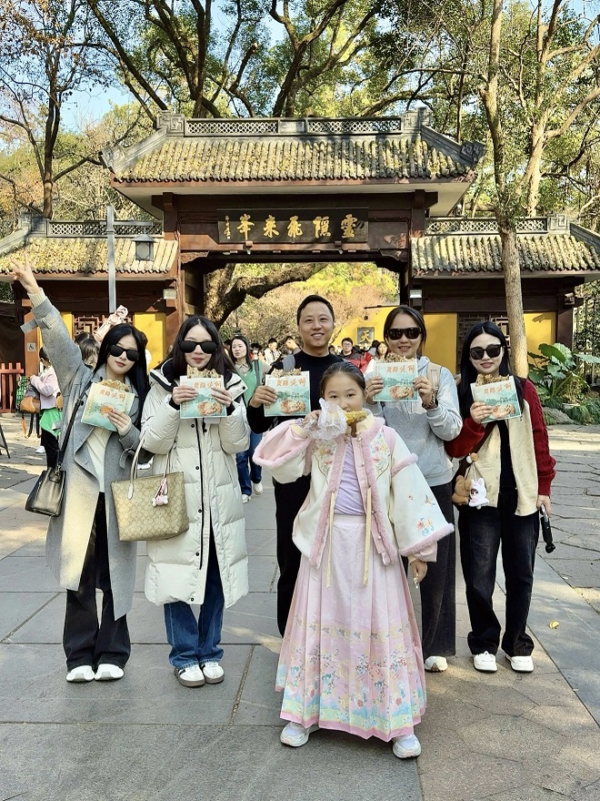 在飞来峰下,大家围着那些历经岁月侵蚀的石刻造像驻足讨论,感叹古代工匠的精湛技艺与文化的传承力量。原本因工作忙碌而略显疏离的距离,在这样的交流中悄然拉近。