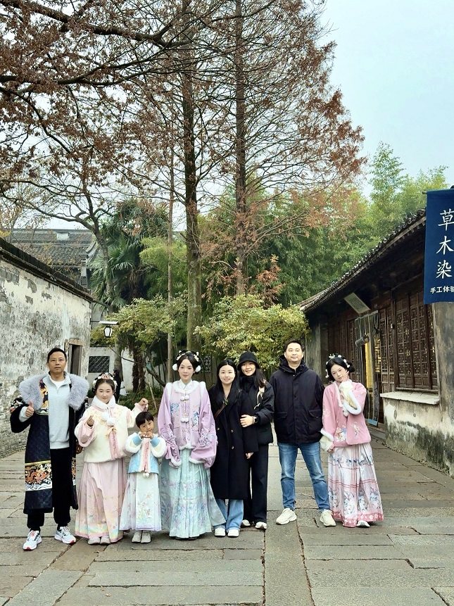 大家沿着河道两旁的青石板路漫步,两旁的店铺摆满了特色手工艺品与当地小吃,有人停下脚步挑选伴手礼,有人品尝着香甜的定胜糕与鲜美的姑嫂饼,感受着乌镇的烟火气息。