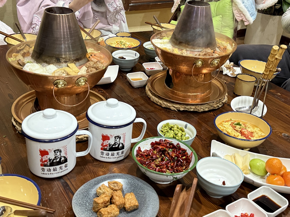 夜幕降临,我们在蘑菇屋里享用了一顿地道的江南晚宴。餐桌上,江南风味的时令菜肴、鲜美的河鲜、养生的暖锅一应俱全,大家举杯共饮,畅谈着两天来的所见所感。