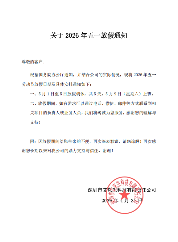 下一篇:深圳市艾克生2026年清明节放假通知